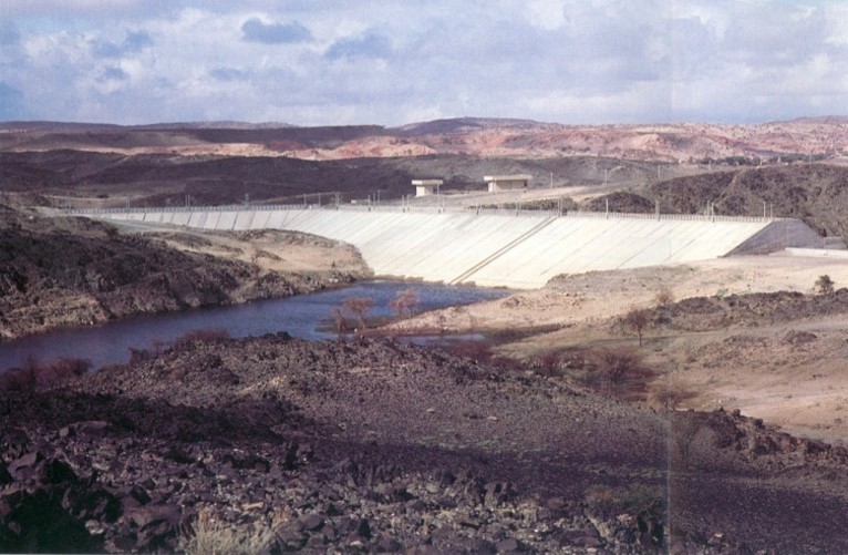 These are water conservation dams ranging in height from 10 meters to 42 meters.  Based on the topography, geology and availability  of material, 4 dams were designed as concrete gravity dams, 3 as rock fill dams, and 5 as earth fill dams.